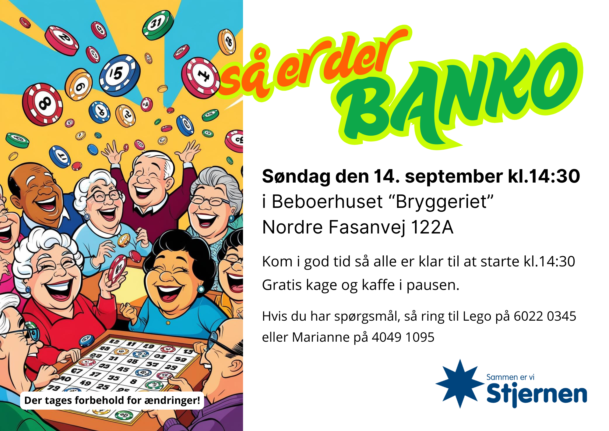 Vi glæder os til en hyggelig eftermiddag med fulde plader og masser af grin – tag gerne naboen med!